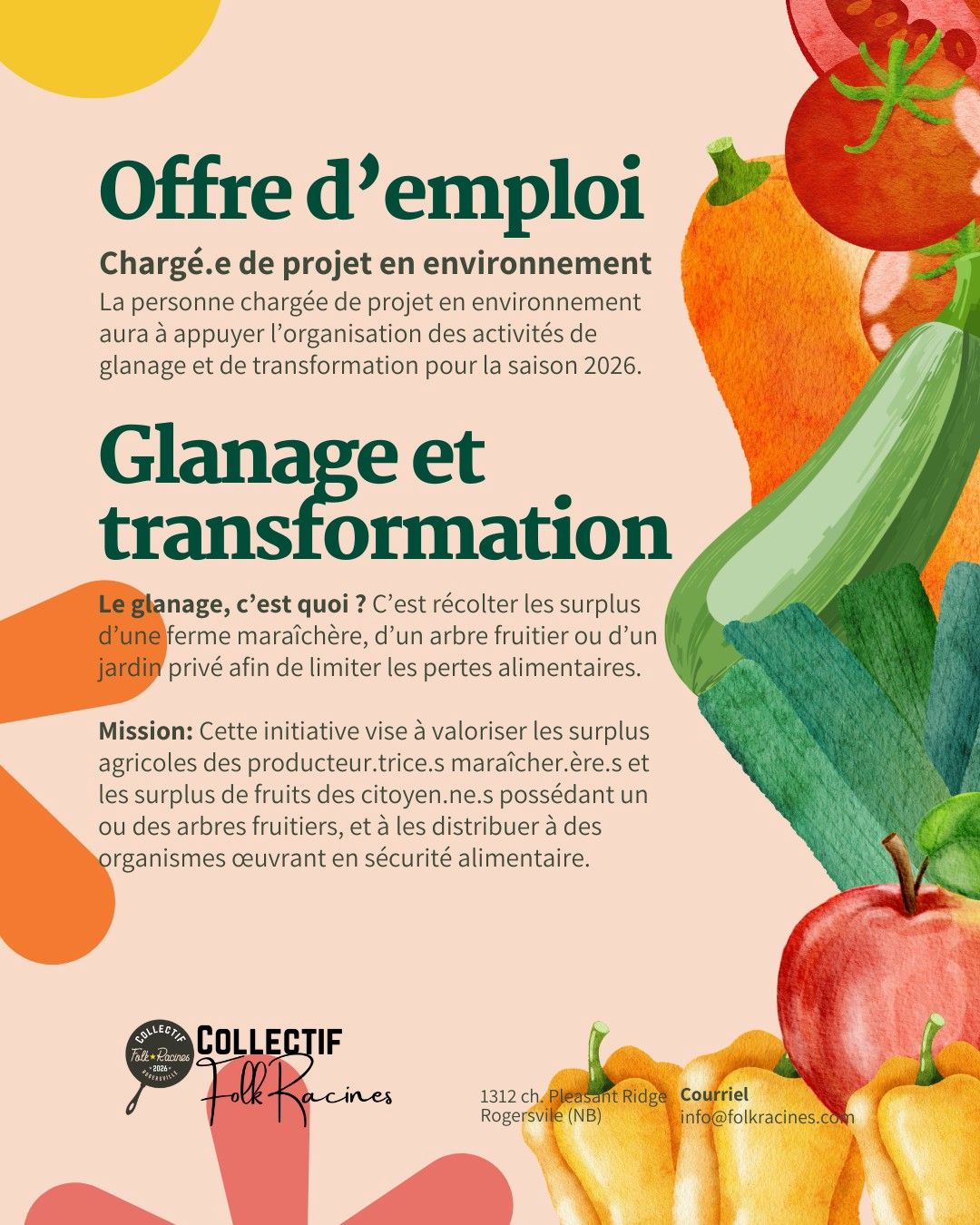 Emploi d'ete: Chargée de projet en environnement, Collectif Folk Racines, Rogersville, Nouveau-Brunswick